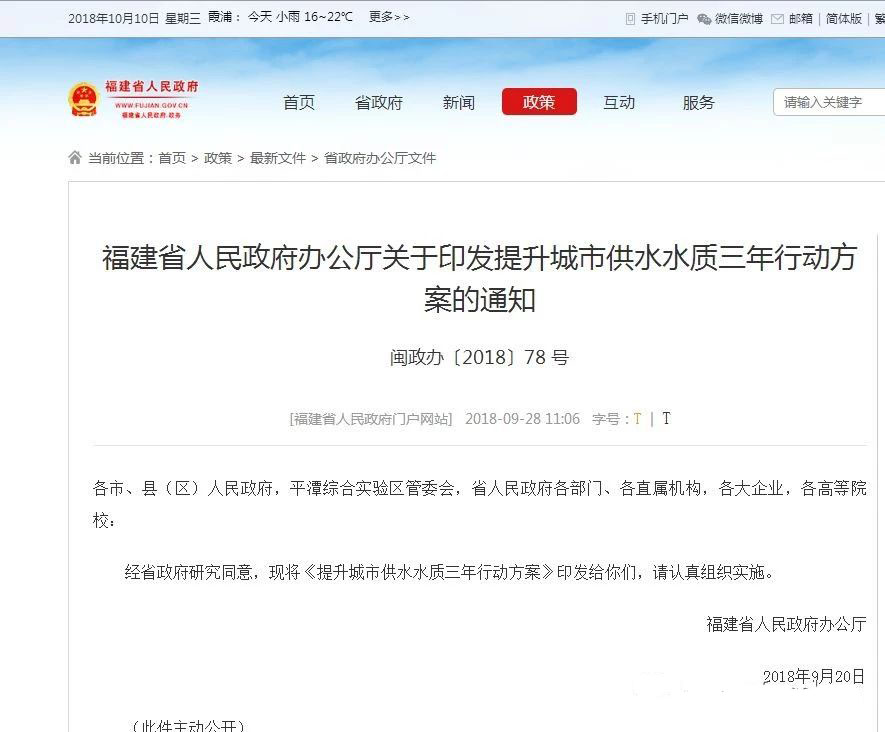 福建省是我國不銹鋼大省,全球大的不銹鋼產業群體在福安市,福建省先從省級高度重視不銹鋼水管的應用普及,意味著我國不銹鋼水管產業的春天已正式到來。福建省人民政府辦公廳關于印發提升城市供水水質三年行動方案的通知如下: