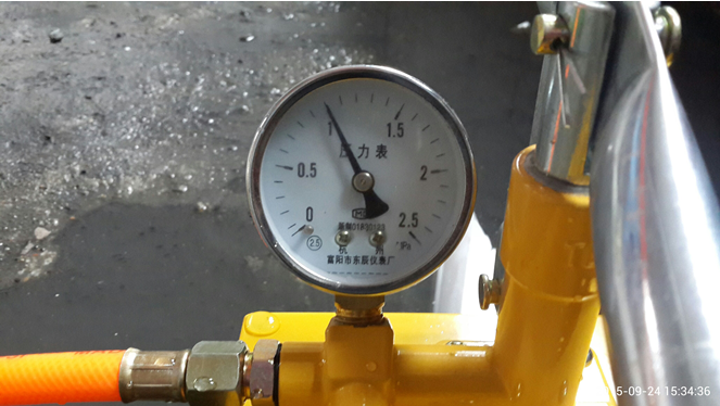 驗收技巧:水管布設好后,先關閉水表的閥門,除預留打壓口外,封堵管路各出水口。在打壓口連接打壓機器(即簡易手搖水泵),用打壓機器將水管內水壓打到管道工作壓力的1.5倍(入戶市政自來水的一般為4~6個大氣壓,即0.4~0.6 Mpa),升壓時間不應小于10 min,升至規定壓力后,觀查10分鐘,壓降不得超過0.02 Mpa,以所有接頭、接口無漏水為合格。