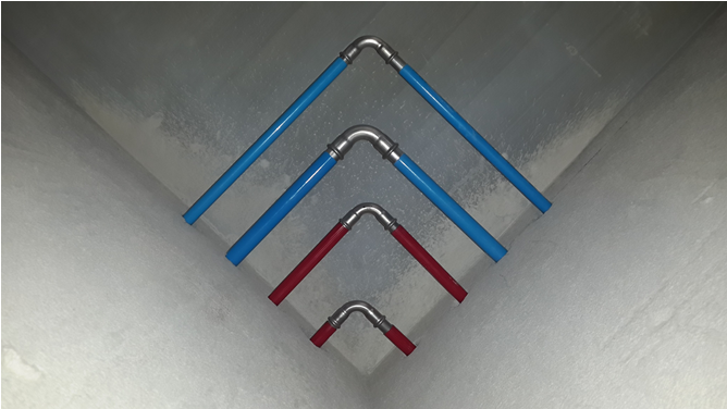 驗收技巧:燃氣管道與水管相交處,水管應使用管橋連接,避免管道彎曲,并保證燃氣管道與水管距離100 mm以上。