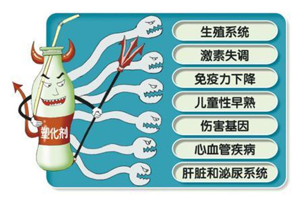聯(lián)苯酚A(Bisphenol):有雌性荷爾蒙化學物質反應,乳腺癌細胞呈異常增殖;鄰苯二甲酸酯(DEHP,BBP,DBP):對精巢具有毒性;肝臟癌細胞呈異常增殖;聚乙烯(Polystyrene):引起婦女體內荷爾蒙增加;聚氯聯(lián)苯(PCB):環(huán)境荷爾蒙的主要成員,燃燒以后產生二惡英。