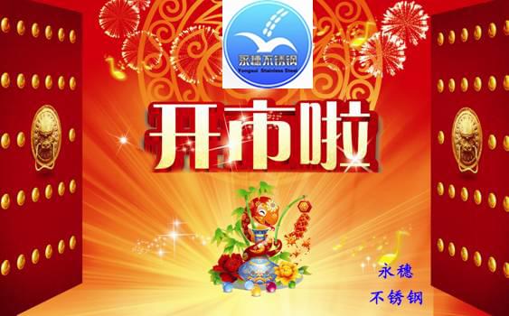 2015年2月26日佛山市永穗不銹鋼有限公司開市啦!新的一年,佛山市永穗不銹鋼有限公司將繼續(xù)為廣大客戶提供優(yōu)質優(yōu)價的不銹鋼產品,不設低起訂量!現(xiàn)貨批發(fā)!歡迎新老客戶惠顧!新春有驚喜!豪禮送不停!